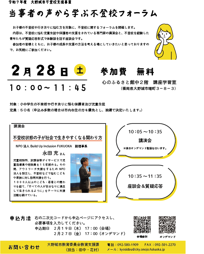 【登壇のお知らせ】大野城市 不登校支援事業「当事者の声から学ぶ 不登校フォーラム」